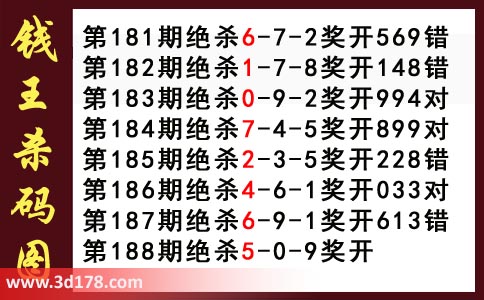 近期3d钱王杀码具体详情: