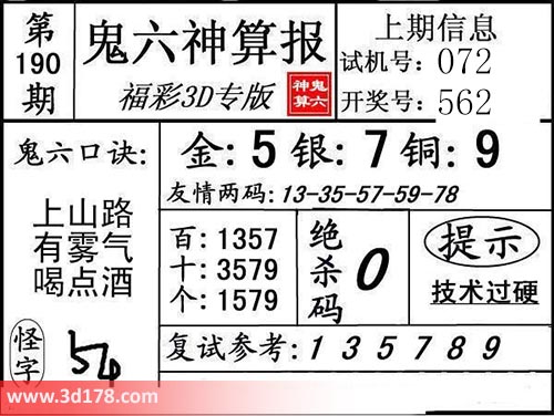 3d第17190期鬼六神算报为您推荐鬼六口诀: