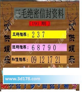 3d之家第2017191期三毛绝密信封资料图:福彩3d第191期三毛绝密信封资料图详解:三码推荐:237旺码推荐:06789和值推荐:9 12 17 21该三毛图库由3d之家3d图库频道原创,仅供彩民参考,温馨提供。