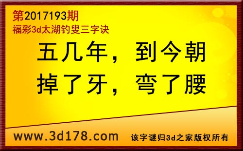 3d第17193期太湖字谜:五几年,到今朝,掉了牙,弯了腰