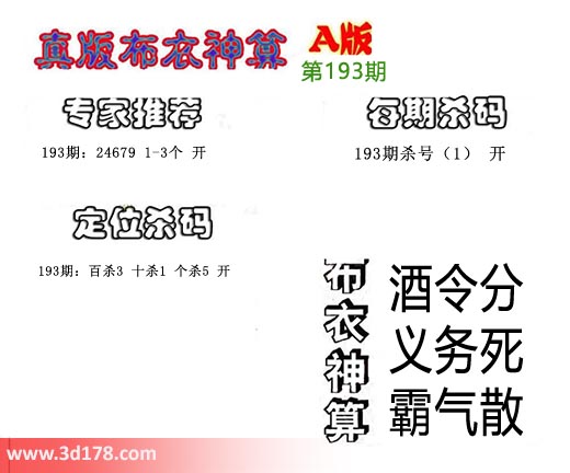 3d布衣神算第193期定位杀码: