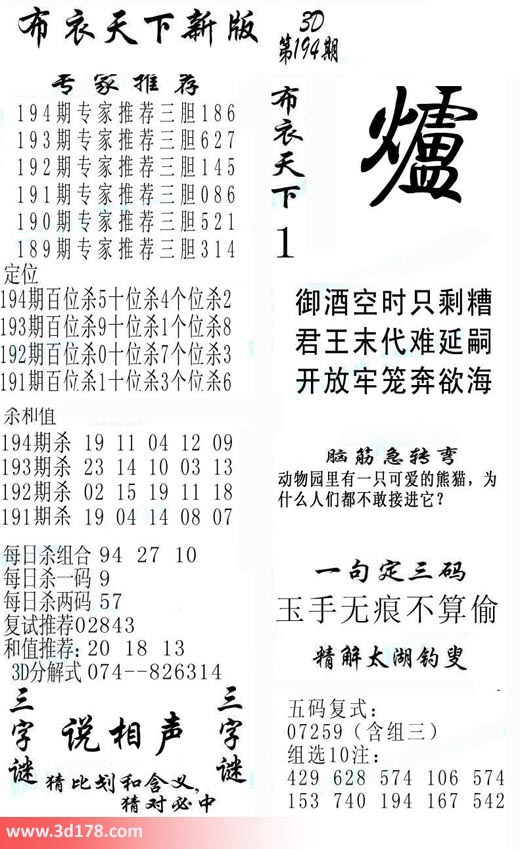 福彩3d第2017194期福彩3d布衣天下新版: