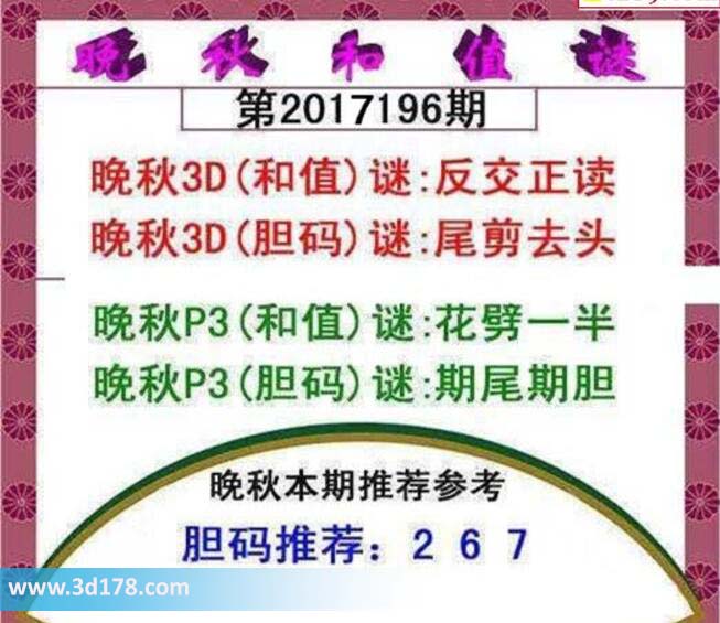 晚秋p3(胆码)谜:期尾期胆