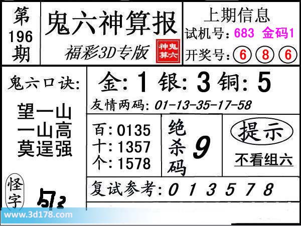 3d第17196期鬼六神算报为您推荐鬼六口诀: