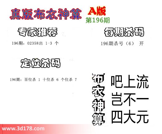 布衣神算:吧上流,岂不一,四大元