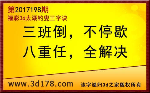 3d第17198期太湖字谜:三班倒,不停歇,八重任,全解决
