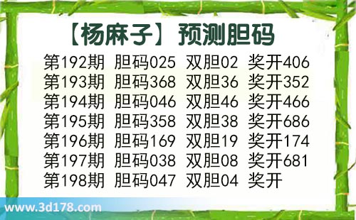 3d第2017198期杨麻子胆码推荐: