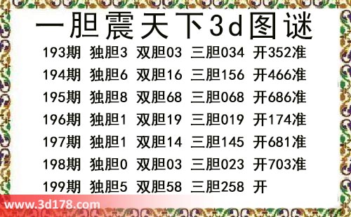 本期一胆震天下3d图谜: