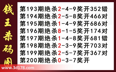 近期3d钱王杀码具体详情: