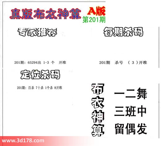 3d之家布衣图库之布衣神算图第2017201详解: