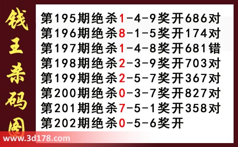 近期3d钱王杀码具体详情: