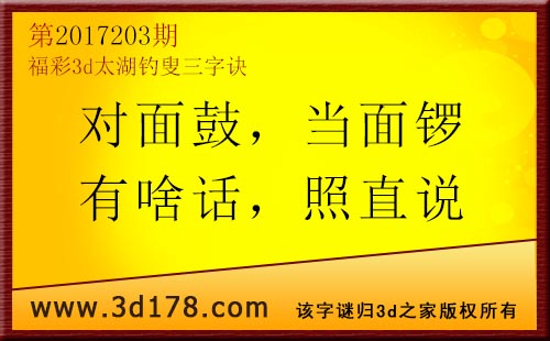 3d第17203期太湖字谜:对面鼓,当面锣,有啥话,照直说