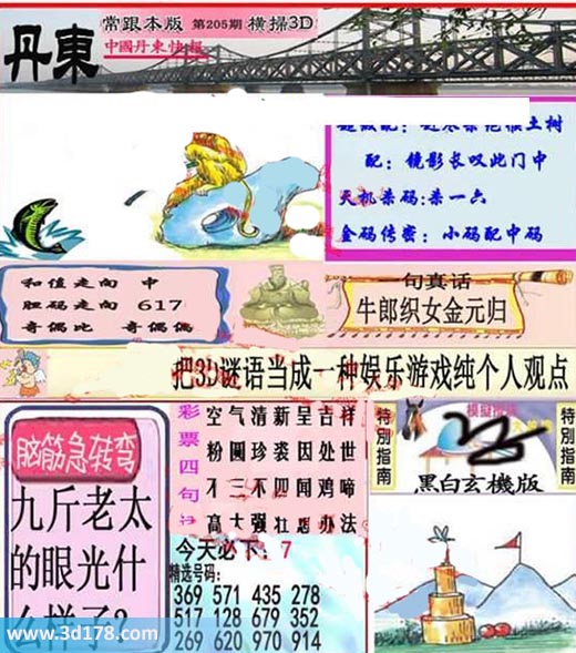 3d之家第2017205期丹东快报图:3d第2017205期丹东快报图详解:超级配:镜影长叹此门中天机杀码:杀一六和值走向:中胆码走向:167奇偶比:1:2金码传密:小码配中码精选号码:369 571 435 278 517 128 679 352 269 620 970 914脑筋急转弯:九斤老太的眼光什么样子?该丹东图库由3d之家3d图库频道原创,仅供彩民参考,温馨提供。