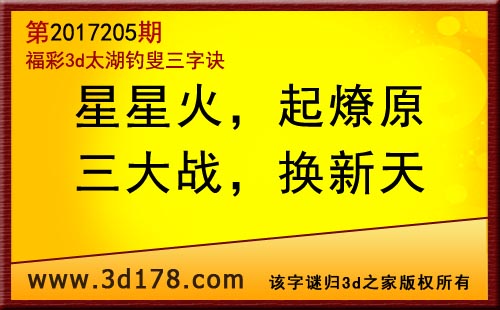 3d第17205期太湖字谜:星星火,起燎原,三大战,换新天