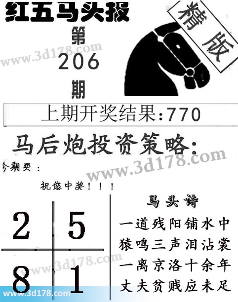 3d第2017206期红五马头报本期马头诗详解: