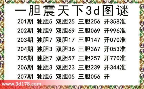 本期一胆震天下3d图谜: