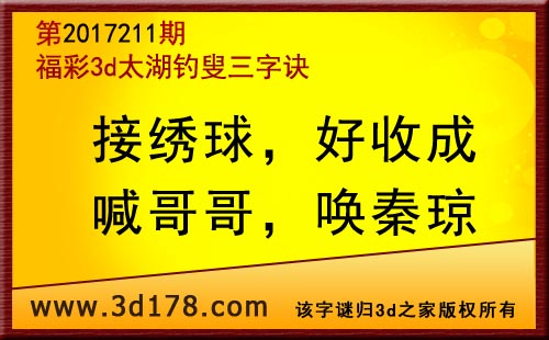 3d第17211期太湖字谜:接绣球,好收成,喊哥哥,唤秦琼