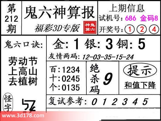 3d第17212期鬼六神算报为您推荐鬼六口诀: