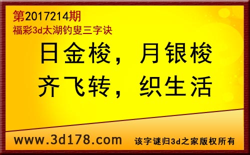 3d第17214期太湖字谜:日金梭,月银梭,齐飞转,织生活
