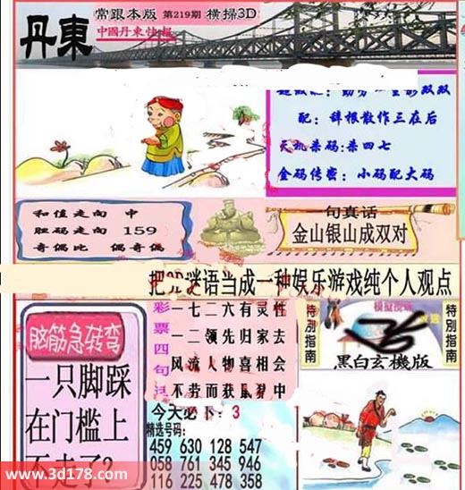 3d之家第2017219期丹东快报图:3d第2017219期丹东快报图详解:天机杀码:杀四七和值走向:中胆码走向:159奇偶比:1:2金码传密:小码配大码精选号码:459 630 128 547 058 761 345 946 116 225 478 358脑筋急转弯:一只脚踩在门榄上走不了?该丹东图库由3d之家3d图库频道原创,仅供彩民参考,温馨提供。