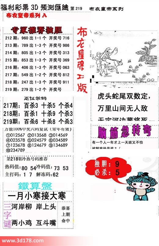 福彩3d第2017219期布衣皇帝A版布衣专家独家推荐: