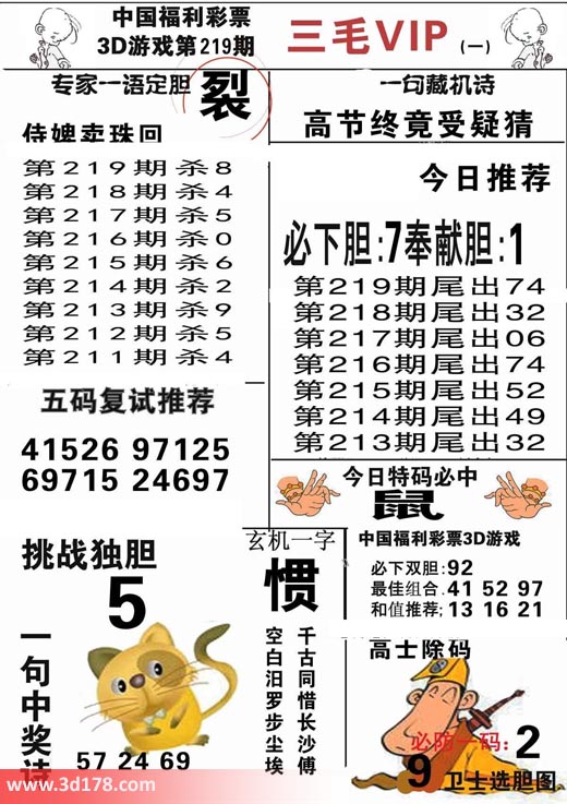 3d第2017219期三毛VIP详解: