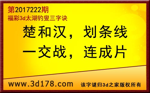 3d第17222期太湖字谜:楚和汉,划条线,一交战,连成片