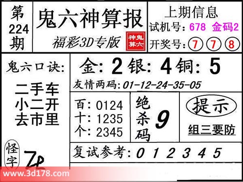 3d第17224期鬼六神算报为您推荐鬼六口诀: