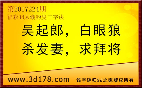 3d第17224期太湖字谜:吴起郎,白眼狼,杀发妻,求拜将