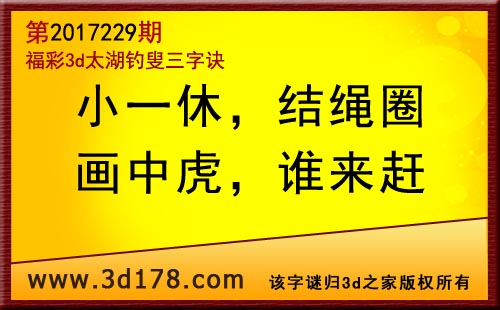 3d第17229期太湖字谜:小一休,结绳圈,画中虎,谁来赶