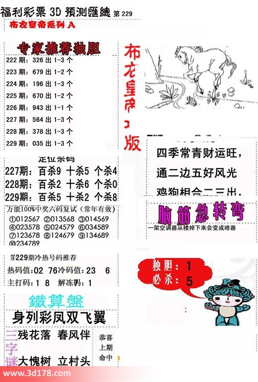 福彩3d第2017229期布衣皇帝A版布衣专家独家推荐: