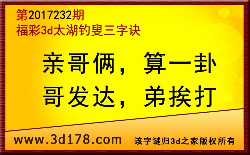 3d第17232期太湖字谜:亲哥俩,算一卦,哥发达,弟挨打
