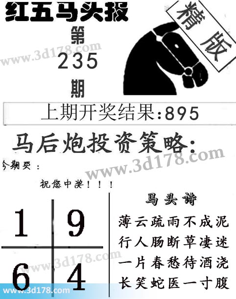 3d第2017235期红五马头报本期马头诗详解: