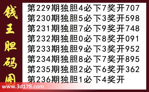 胆码图库3d第2017236期钱王胆码图: