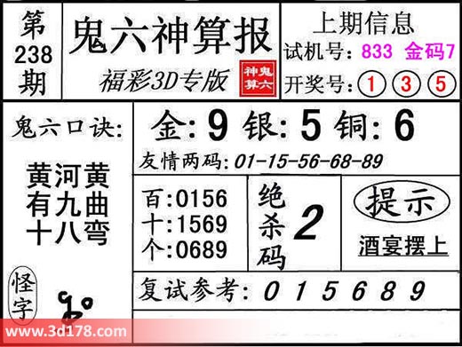 3d第17238期鬼六神算报为您推荐鬼六口诀: