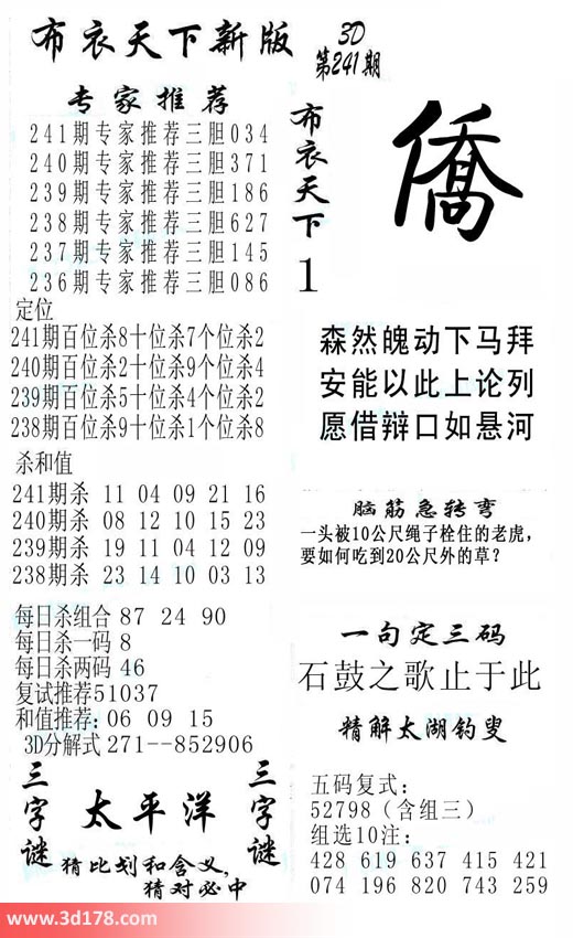 福彩3d第2017241期福彩3d布衣天下新版: