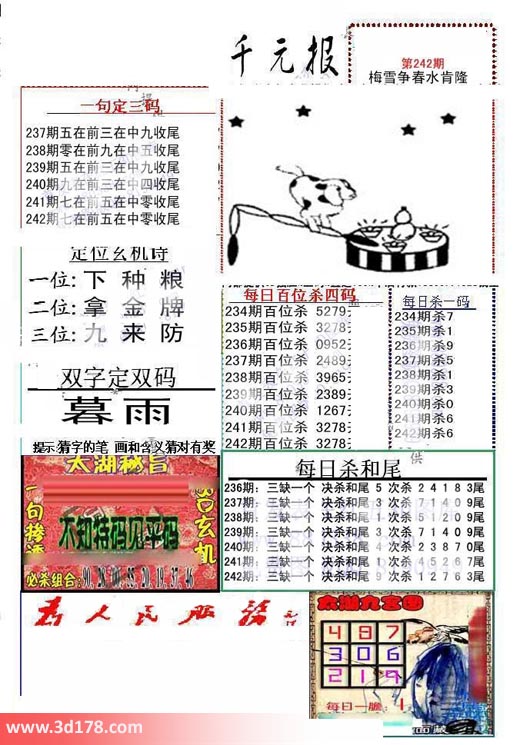 福彩3d第2017242期布衣千元报图详情分析如下: