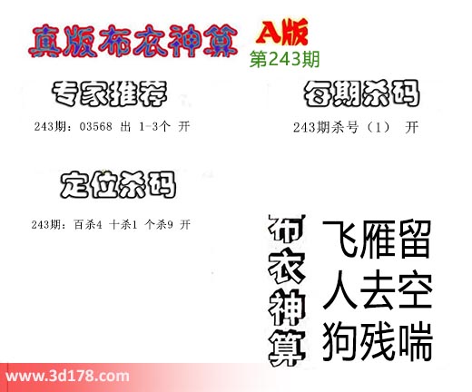 3d布衣神算第243期定位杀码: