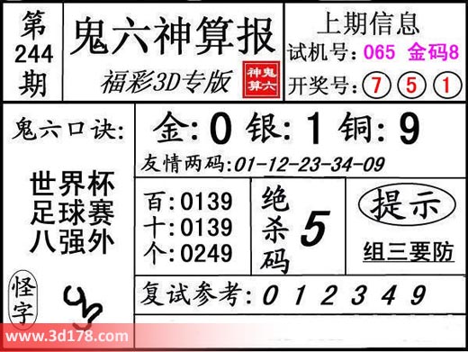 3d第17244期鬼六神算报为您推荐鬼六口诀: