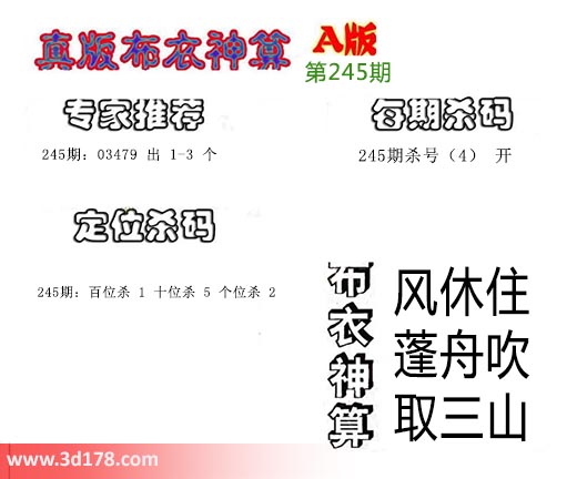 3d布衣神算第245期定位杀码: