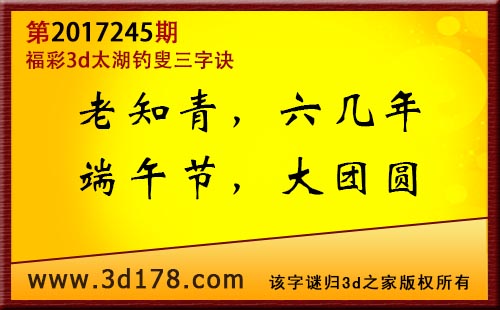 3d第17245期太湖字谜:老知青,六几年,端午节,大团圆