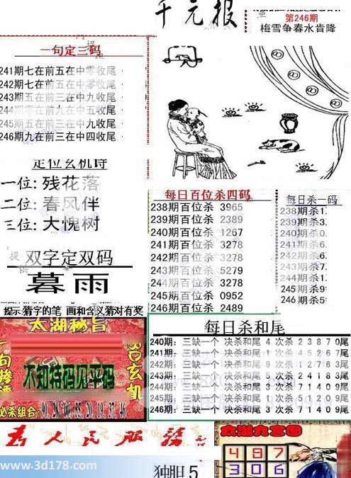 福彩3d布衣图库布衣千元报第2017246期定位玄机诗: