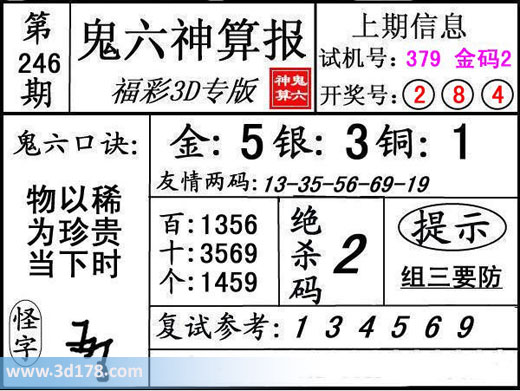 3d第17246期鬼六神算报为您推荐鬼六口诀: