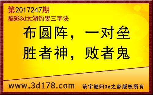 3d第17247期太湖字谜:布圆阵,一对垒,胜者神,败者鬼