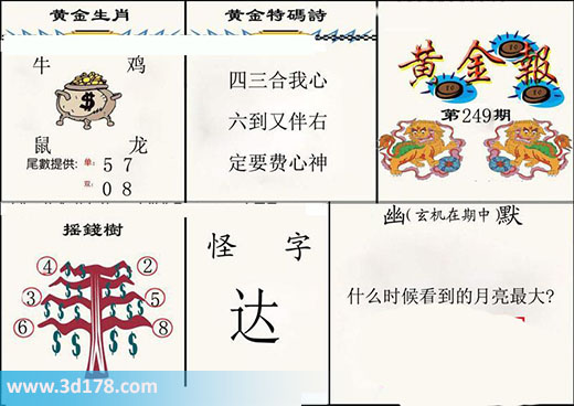 福彩第17249期3d黄金报黄金特码:3d之家第249期黄金报详解:黄金特码诗:四三合我心,六到又伴右,定要费心神黄金生肖:牛鸡鼠龙尾数推荐:单:5 7 双:0 8摇钱树推荐号码:436 258怪字:达幽默(玄机在其中):什么时候看到的月亮最大?黄金报图由3d之家3d图库频道原创,仅供彩民参考,温馨提供。