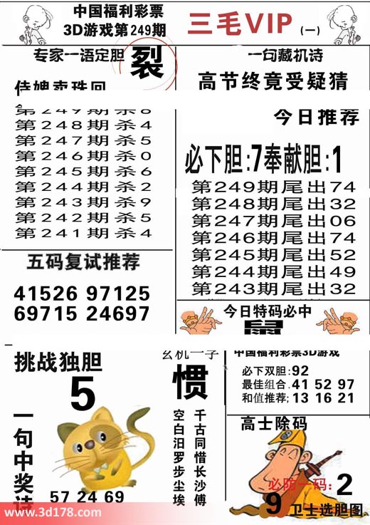 3d第2017249期三毛VIP详解: