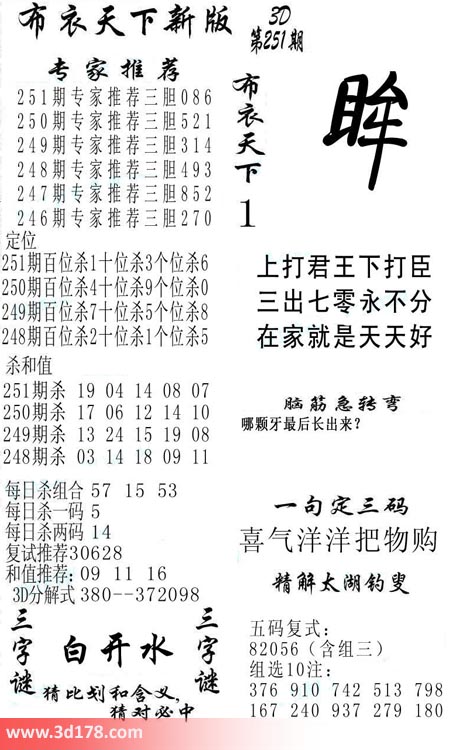 福彩3d第2017251期福彩3d布衣天下新版: