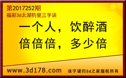 3d第17252期太湖字谜:一个人,饮醉酒,倍倍倍,多少倍
