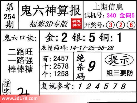 3d第17254期鬼六神算报为您推荐鬼六口诀: