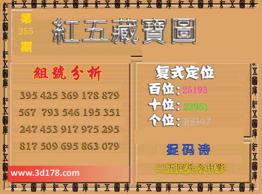 福彩3d第2017255期红五藏宝图: